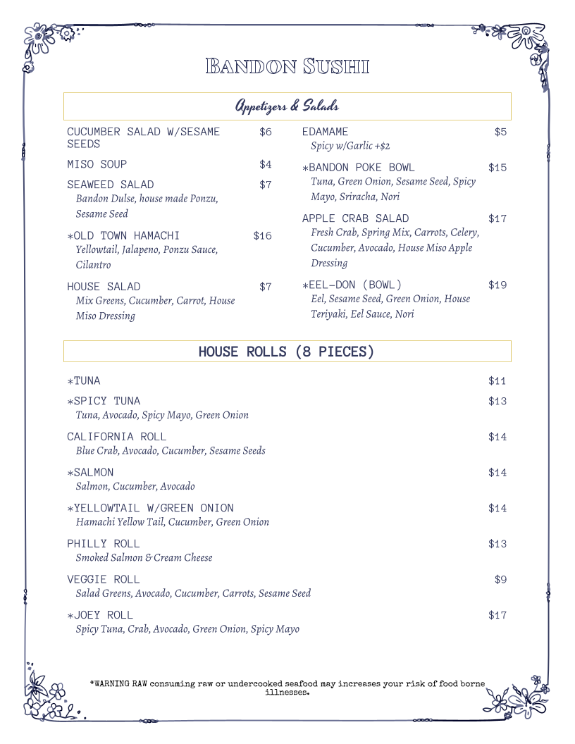 With each dish crafted to perfection, Bandon Sushi promises an unforgettable culinary experience. Whether you are a sushi aficionado or exploring new tastes, this restaurant is sure to impress on your next visit!